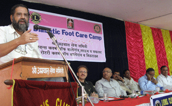 “Diabetes is not like other disease where the relatives are always there by the patient’s bedsides to take care of them. For diabetic patients, the scene is totally different. The disease is such that they don’t have any option but to look after them on their own”, stated Dr. Dhananjay Kelkar. Dr. Dhananjay, a scientist who has earned praise and admiration from the doctors all across the world for his efforts in designing the shoes and footwear especially for the diabetic patients, was speaking at the Diabetic Foot Care Camp jointly organized by Lions Club of Malegaon South and Sapphire, Rotary Club of Malegaon and Mid-Town, and Shri Agrawal Seva Samiti on Sunday 30th March, 2008 at Agresen Bhavan in Malegaon. The program was part of the Lion Diabetes Permanent Activity Project started two years back.