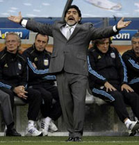 In the stands, German Chancellor Angela Merkel was clapping and celebrating while down below, Maradona clasped his hands before his face in frustration.