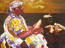 cooking on hearths and a couple of Zulu men gossiping idly --