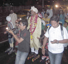 traffic on the VIP road nearly came to a screeching halt. Budding skaters, the disciples of groom Sajid, also danced to the beating