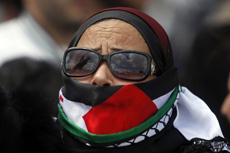 Flag-waving crowds neared the Qalandiya crossing out of Ramallah,