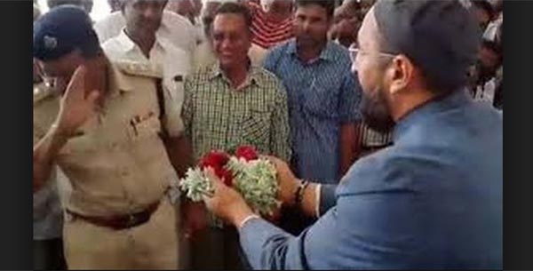 In Februray this year, Asaduddin Owaisi resorted to 'Gandhigiri' and offered flowers to additional police commissioner Noorullah Shareef to protest a similar ban.