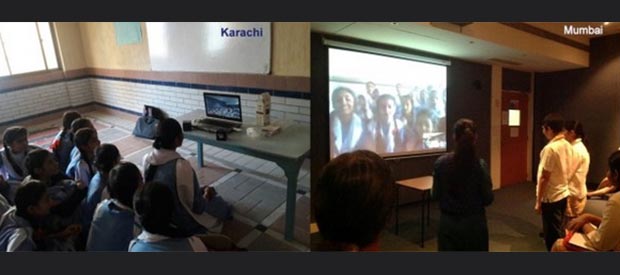 In the first “Indo-Pak Classroom Connect”, they connected the grade 7 classroom of Ecole Mondiale World School (Mumbai) and Government Girls’ Secondary School (Gizri, Karachi) through video conference to facilitate interaction between students.The interaction took place on 2nd December and students interacted with each other over different issues. The students also discussed their history textbooks and tried to know the reason for partition.