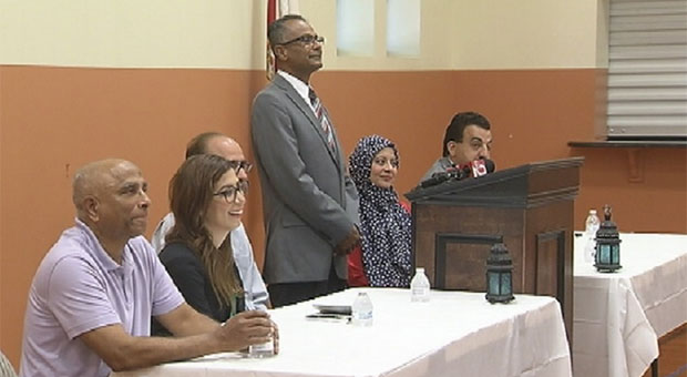 Representatives from 13 local Muslim groups organized a news conference in Longwood on Saturday morning to condemn the terrorist attack in San Bernardino, California, and to publicly invite Trump to tour a local mosque.