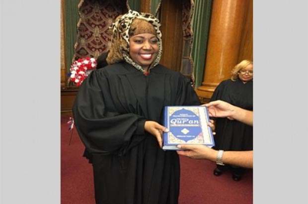 Judge Walker took her oath respecting the sacred book of her Islamic faith, the Holy Qur’an, while also wearing a hijab.
