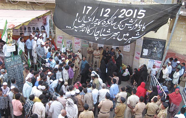 On Thursday – the 4th day of their protest, health condition of Abdur Rehman and Mohammad Muslim Dhande worsened. Both of them however refused to take medical aid, and continued their protest in front of the main gate of the civic body along with fellow party workers.