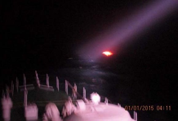 The vessel, which had set off from near Karachi on New Year's Eve, turned into a ball of fire and sank after its occupants, believed to be four in number, apparently set fire to it early Jan 1.