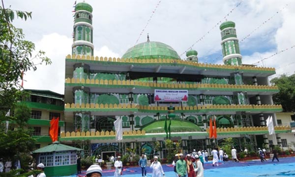The four-storey glass mosque -- 120 feet high and 61 feet wide -- stands inside the Idgah in Shillong's Lahan area, close to the garrison grounds along the Umshyrpi river.