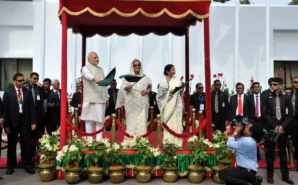 The formal LBA ratificaiton ceremony was witnessed by Modi, Hasina and Banerjee.
