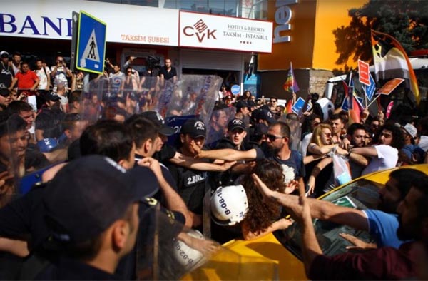 Parliament members from the pro Kurdish People's Democratic Party (HDP) and People's Republican Party (CHP) attempted to negotiate with the riot police in order to convince them to allow the crowd to march. MPs formed a barricade between riot police and the crowd by holding hands.