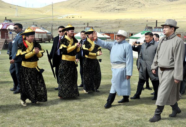 [Prime Minister Narendra Modi with Prime Minister of Mongolia Chimediin Saikhanbileg at Mini Naadam Festival, in Ulaanbaatar, Mongolia on May 17, 2015.]