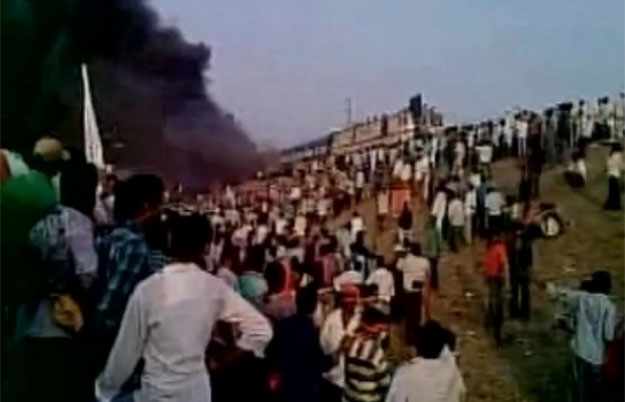Soon the protestors marched towards the track and stopped Visakhapatnam-Vijayawada Ratnachal Express near Tuni railway station. They attacked the engine and set afire eight bogies after ordering passengers to get down.