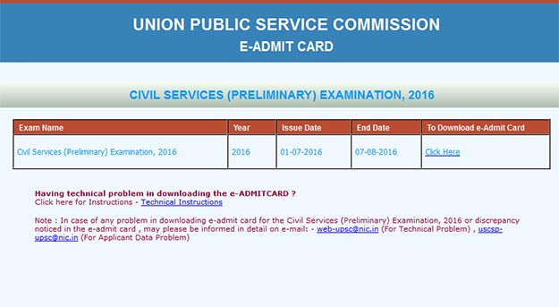 New Delhi: The Union Public Service Commission (UPSC) Friday made active the link to download the e-Admit Cards for the Civil Services (Preliminary) Examination 2016 on its official website.