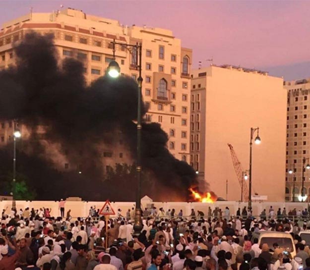 Al Arabiya News Channel’s correspondent said the suicide bombing took place in a parking lot between the city court and the mosque, visited by millions every year. The channel showed images of fire raging in a parking lot with at least one body seen nearby. The suicide bomber also died in the attack.