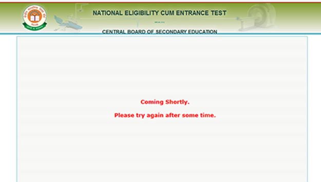 The CBSE page has on its bottom the links of the portals for NEET and other exams conducted by it. Clicking on the link provided for NEET leads to www.aipmt.nic.in where "Coming Shortly" message greets the visitors.