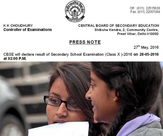 New Delhi: The Central Board of Secondary Education (CBSE) Class X (Class 10) results 2016, which will be declared today i.e. Saturday May 28, 2016 by 02:00 pm, will be accessible to students on three wesbites, the Central board said in a statement.