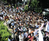 Sultan-ul- Uloom premises and spilled on to the roads blocking