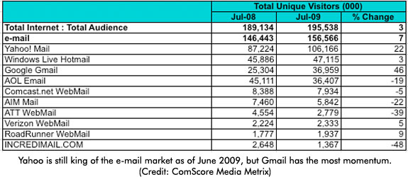 July 2009 period, Gmail grew at a growth rate of 46 percent with 37