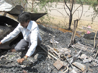 Mumtaz Pathan, the owner of Yash Photo Studio was out for the Friday prayer. The studio was having the accessories worth 230,000 rupees that included two computers, a scanner and other regular machineries needed for a functioning photographer. The studio was looted in the full daylight and was later set ablaze by the violent mob. His studio with an apparent non-Muslim name was surrounded by the shops belonging to the majority community members in a prominent shopping centre near the bus stand. It is still not clear to Mumtaz Pathan how the outsiders singled out his studio for marauding.